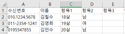 수신자 연락처를 아래에 직접입력 또는 붙여넣기 후 엔터를 눌러주세요.