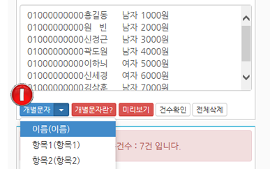 수신자 연락처를 아래에 직접입력 또는 붙여넣기 후 엔터를 눌러주세요.